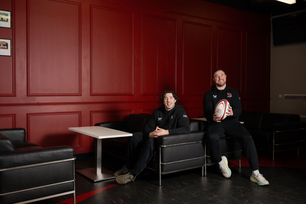• Two Ulster Rugby players pictured in the 1924 Lounge Case Study: Inside the Transformation of Ulster Rugby’s 1924 Lounge and Nevin Spence Centre 6th March 2026